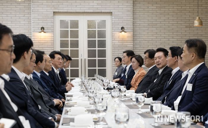 뉴스포원(NEWSFOR1) 윤경덕 기자 | 10월 2일 윤석열 대통령은 대통령실 파인그라스에서 국민의힘 원내지도부, 상임위원장 및 간사단을 격려하기 위해 만찬을 가졌다.