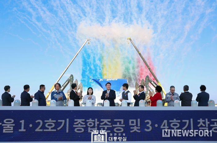 뉴스포원(NEWSFOR1) 윤경덕 기자 | 윤석열 대통령은 10월 30일 오후 경북 울진의 신한울 원전 부지에서 원전산업 관계자와 지역주민, 원자력 전공 학생 등이 참석한 가운데 열린 ‘신한울 원전 1·2호기 종합준공 및 3·4호기 착공식’에 참석해 관계자들을 격려했다.