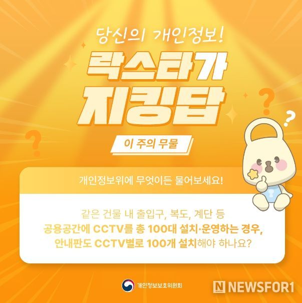 뉴스포원(NEWSFOR1) 편집국 기자 | Q. 같은 건물 내 출입구, 복도, 계단 등 공용공간에 CCTV를 총 100대 설치·운영하는 경우, 안내판도 CCTV별로 100개 설치해야 하나요?