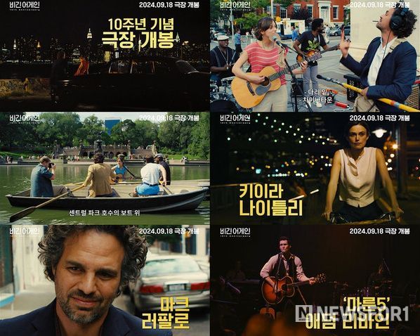 뉴스포원(NEWSFOR1) 유장훈 기자 | 개봉 10주년을 맞이한 모두의 인생 음악영화 '비긴 어게인'이 다가오는 9월 18일 극장 개봉을 확정한 가운데, 10주년을 기념하여 포스터와 예고편을 공개하여 화제다.[감독: 존 카니│출연: 키이라 나이틀리, 마크 러팔로, 헤일리 스테인펠드, 애덤 리바인│수입/배급: 판씨네마㈜]