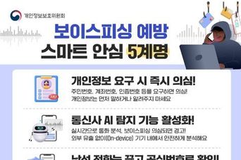 뉴스포원(NEWSFOR1) 편집국 기자 | 보이스피싱 예방 스마트 안심 5계명 ■ 개인정보 요구 시 즉시 의심! 주민번호, 계좌번호, 인증번호 등을 요구하면 의심! 개인정보는 먼저 말하거나 알려주지 마세요. ■ 통신사 AI 탐지 기능 활성화! 실시간으로 통화 분석, 보이스피싱 의심되면 경고! 외부 유출 없이(On-device) 기기 내에서 안전하게 분석해요. ■ 낯선 전화는 끊고 공식번호로 확인! 수사기관·금융기관에서 돈이나 개인정보를 요구하면 일단 끊고, 공식번호로 확인하세요. ■ 출처 불명 링크와 앱 설치 주의! 문자·메신저로 전달된 출처 불명 링크, 어플 설치 등 주의! 공식 앱마켓·홈페이지로 다시 확인하세요. ■ 가족·지인에게 송금 전 반드시 재확인! 메신저·전화로 급하게 돈을 요구하면 반드시 본인에게 직접 확인하세요. - 신고전화: 경찰청 ☎112, 전기통신금융사기 통합대응단 ☎1394, KISA(개인정보침해) ☎118 개인정보위는 국내 통신 3사와 보이스피싱 예방에 앞장서고 있습니다! 통신 3사(KT, LGU+, SKT) '실시간 통화 기반 보이스피싱