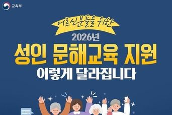 뉴스포원(NEWSFOR1) 편집국 기자 | 어르신분들을 위한 2026년 성인 문해교육 지원 이렇게 달라집니다. ■ 첫째, 찾아가는 AI·디지털 문해교육 한글햇살버스 운영 지역 확대 - 5개 지역 → 9개 지역 내외 신체·지리적 여건 등으로 기존 문해교육 참여가 어려웠던 학습자도 한글햇살버스를 통해 거주지 내 경로당·마을회관 등에서 무인안내기나 스마트폰 배달·쇼핑앱 등 사용방법을 배울 수 있습니다. ■ 둘째, 일상생활에 필요한 역량 중심 디지털 현장실습 지원 민간기업, 공공기관 등의 협력을 통해 은행, 매장 등 다양한 현장실습을 제공하고 AI 기기를 직접 사용하고 숙달할 수 있는 교육도 함께 운영합니다. ※ 하나은행 연계 디지털 금융문해교육, 맥도날드 연계 키오스크 현장실습 등 ■ 셋째, 제5차 성인 문해능력조사 실시 성인 문해능력조사는 전국의 18세 이상 성인 1만여 명을 대상으로 3년마다 실시하여 국민의 기초문해능력 실태를 파악하고 관련 정책 수립에 활용합니다. ※2026년 9월부터 실시, 2027년 결과 발표 예정