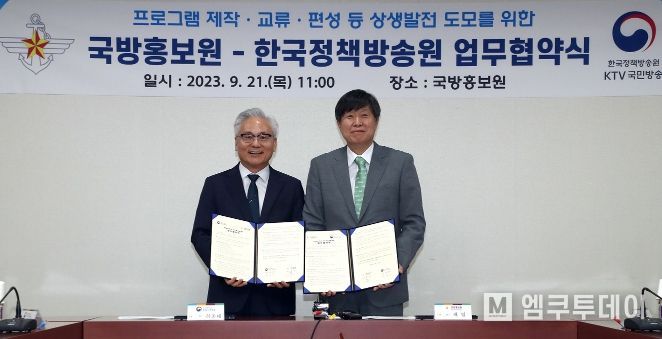 엠쿠투데이 편집국 기자 | ‘대한민국 정책채널’ 한국정책방송원(원장 하종대, KTV)과 ‘국방전문 미디어 기관’ 국방홍보원(원장 채일)이 영상콘텐츠 강화를 위한 업무협약을 체결했다.