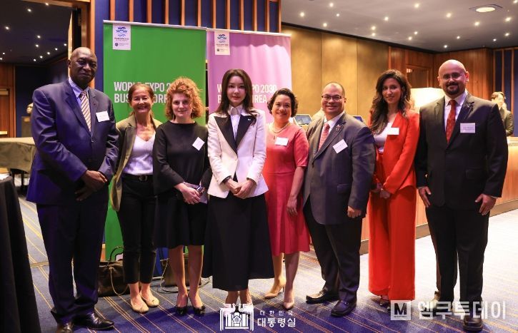 김 여사는 공연 전 리셉션에서 필리핀, 코트디부아르, 싱가포르, 조지아, 쿠웨이트 등 외교인사, 정영양 스미소니언 국립아시아예술박물관 이사 등 현지 문화예술인, 그리고 뉴욕에서 한국어를 공부하는 외국인 대학생 등과 만났다. 김 여사는 ”전세계 어디에서나 한국과 한국어에 대한 인기가 높다. 특히 오늘 그 공연으로 이를 실감한다“며, 세계 문화의 중심지인 뉴욕에서 개최되는 우리 합창단의 우리말 공연을 축하했다. 또, 2030 부산세계박람회(엑스포) 유치를 위한 한국의 노력을 소개하며 대한민국과 부산에 대한 관심과 성원을 당부했다. 리셉션장 곳곳에는 ‘BUSAN IS READY’, ‘HIP KOREA’ 배너가 설치됐고, 기념품으로 부산엑스포 키링(key ring)이 전달됐다.