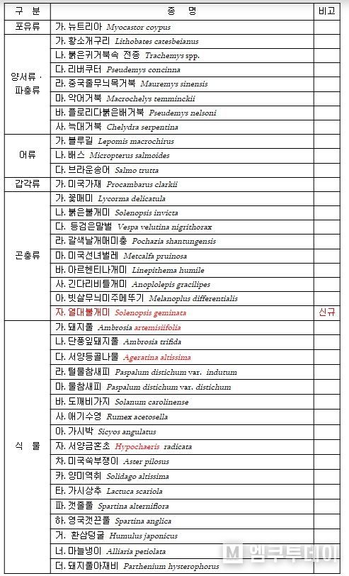 엠쿠투데이 편집국 기자 | 환경부는 9월 25일부터 열대불개미 1종(기존 유입주의 생물)을 생태계교란 생물로, 히말라야산양 등 150종은 유입주의 생물로 신규 지정·관리한다.