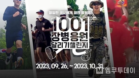 엠쿠투데이 편집국 기자 | 국방부는 10월 1일 국군의 날을 맞아 국민과 함께하는 누리소통망(SNS) 달리기 챌린지(Challenge) '1001 장병 응원 달리기 챌린지'[부제: 열일(1001)한 국군에게 열(10)띤 응원(01)을!]를 전개한다.