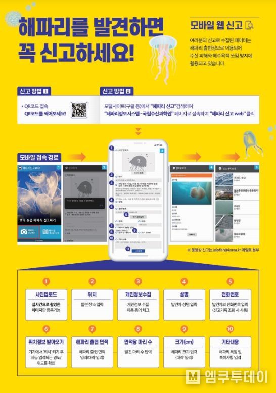 엠쿠투데이 편집국 기자 | 해양수산부와 국립수산과학원(원장 우동식)은 전라북도 전 해역에 발령되어 있던 보름달물해파리 주의단계 특보를 9월 27일 14시부로 해제한다고 밝혔다.