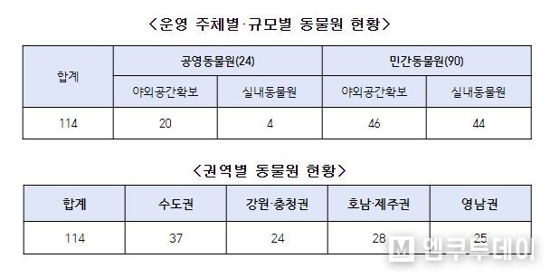 앞으로 개정・시행되는 ‘동물원수족관법’에서는 동물원 등록제가 허가제로 전환되며, 전시된 동물의 특성에 맞는 환경을 제공해야 한다. 아울러 안전사고 및 질병 예방을 위한 관리도 강화해야 하며, 동물원 허가‧점검 시 사육환경의 적정성 등을 전문적으로 평가할 수 있는 전문가를 검사관으로 지정하여 동물원이 적절한 서식환경을 제공하도록 지속적으로 점검해야 한다.