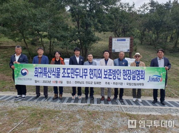 엠쿠투데이 편집국 기자 | 산림청 국립산림과학원(원장 배재수)은 6일, 진도군에서 국립수목원과 함께 희귀특산식물 조도만두나무의 현지 외 보존 방안 모색을 위한 현장설명회를 실시했다.