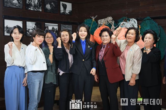 엠쿠투데이 편집국 기자 | 김건희 여사는 10월 6일 오후 제주시 종달어촌계 해녀 휴게실에서 제주지역 해녀 어업인들을 만났다. 오늘 만남에는 제주 해녀협회 관계자, 서울에서 귀어한 젊은 해녀, 제주에서 오랫동안 해녀 어업에 종사한 중·장년 해녀 등 10여 명이 자리를 함께했다. 김 여사는 오랜 세월 바다와 함께 살아온 해녀들의 삶과 애환을 듣고, 어려운 여건에서도 전통을 지켜온 해녀들에게 존경과 감사를 표했다. 현재 해녀와 제주 해녀어업·문화는 각각 국가무형문화재 제132호, 국가중요어업유산 제1호, 유네스코 인류무형문화유산으로 지정돼 있다.