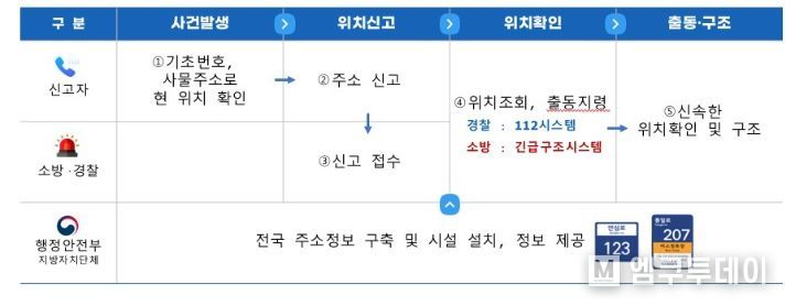 엠쿠투데이 편집국 기자 | 행정안전부는 경찰·소방 긴급구조기관의 신고출동시스템에 기초번호판과 사물주소판 데이터를 탑재하여 신속한 위치 파악과 출동이 가능하도록 지원한다.