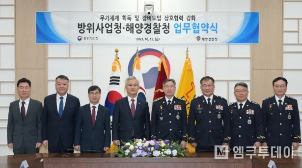 엠쿠투데이 편집국 기자 | 해양경찰청은 방위사업청과 13일 방위사업청 대전청사에서 ‘장비 도입 분야 및 무기체계 획득 상호협력 강화’를 위한 업무협약을 체결했다.