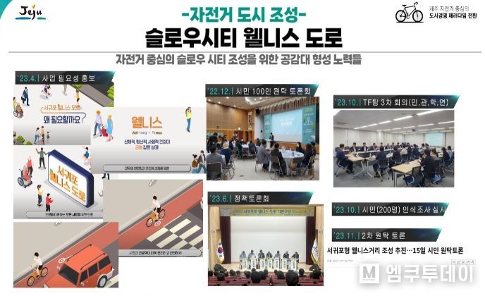 엠쿠투데이 윤경덕 기자 | 제주특별자치도는 도로 다이어트를 통해 자동차 도로를 줄여 자전거 전용도로를 설치하는 등 도로 환경을 새롭게 조성했다. 또한, “자전거 정책 전담팀”을 조직하여 정책 지속성과 전문성 확보에 힘썼다. 이를 통해 제주도는 자동차 중심의 도시에서 자전거와 보행자 중심의 도시로 변화하고 있다.