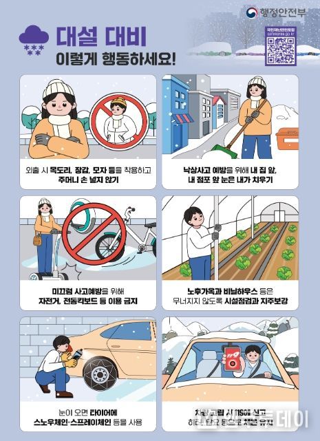 엠쿠투데이 윤경덕 기자 | 행정안전부는 오늘(9일) 수도권 등 중부지역을 중심으로 대설특보가 발표됨에 따라 오전 10시부로 중앙재난안전대책본부 1단계를 가동하고, 대설 위기경보 수준을 ‘관심’에서 ‘주의’로 상향했다.
