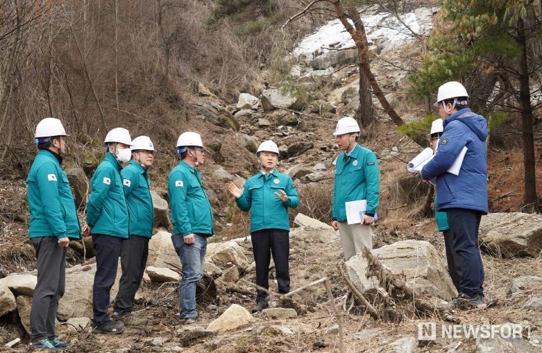 뉴스포원(NEWSFOR1) 윤경덕 기자 | 산림청은 5일 충북 제천시 산사태 피해 복구지를 방문해 국립산림과학원, 한국치산기술협회 등 민·관 전문가와 함께 합동 현장점검을 실시했다고 밝혔다.