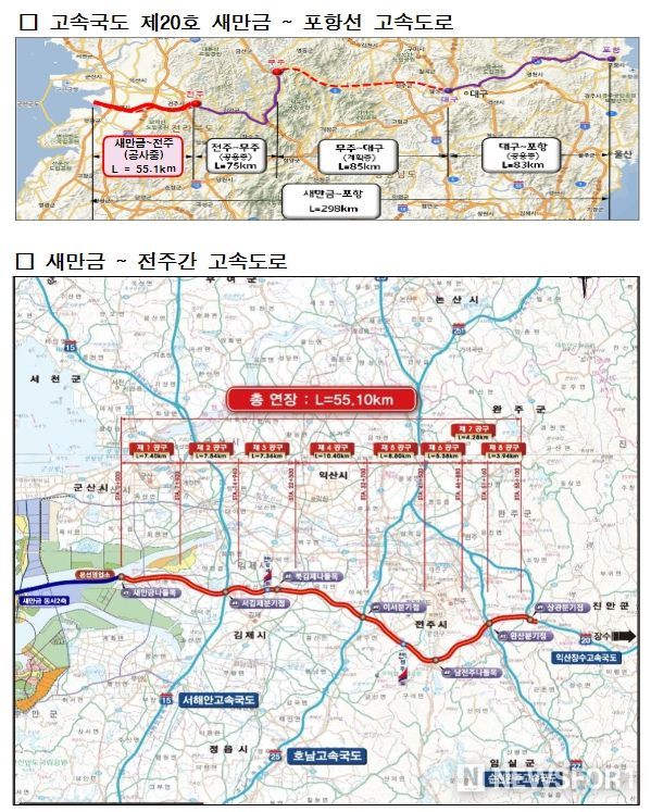 새만금-전주간 고속도로는 총사업비 2조 4,580억 원을 투입하여 총 연장 55.1km, 왕복 4차선을 건설하는 사업으로, 현재 주요 시설물 설치공사가 숨 가쁘게 진행 중이며 2025년에 완공될 예정이다.