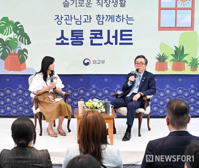 뉴스포원(NEWSFOR1) 윤경덕 기자 | 외교부는 5월 8일 외교부 18층 서희홀에서 외교부 신입직원을 포함한 직원 150여명을 대상으로 ‘외교부 장관과 함께하는 소통콘서트’를 개최했다.