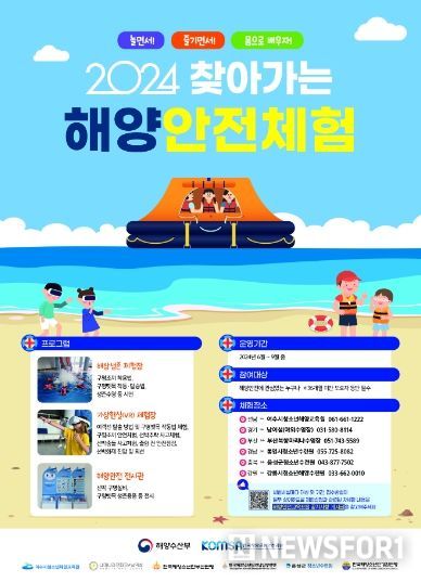 뉴스포원(NEWSFOR1) 윤경덕 기자 | 해양수산부는 여름 휴가철을 맞아 국민들이 해양안전수칙을 몸소 배우고 익힐 수 있도록 6월부터 약 두 달간 전국 6개 권역*의 물놀이시설에서 ‘찾아가는 해양안전체험시설’을 운영한다.