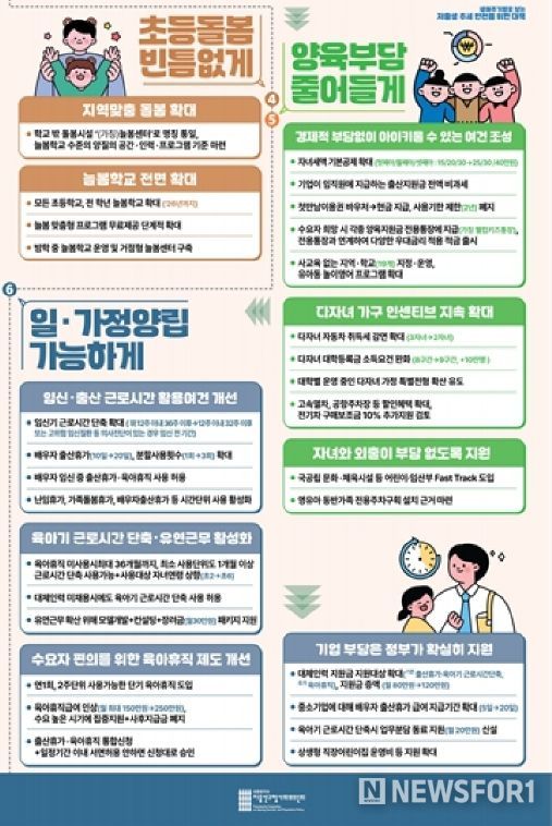뉴스포원(NEWSFOR1) 윤경덕 기자 | 저출산고령사회위원회(위원장: 대통령)는 6월 19일 오후 위원회를 개최하여 '저출생 추세 반전을 위한 대책'을 발표했다.