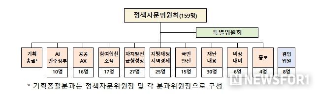 향후 1년(’25.11.24.~’26.11.23.)간 활동하게 되는 제8기 정책자문위원회는 학계·연구원·기업·시민사회 등 다양한 분야의 전문가 159명이 위촉됐으며, 행정안전부 조직개편(’25.11.25. 시행 예정) 내용과 연계해 10개 분과로 구성됐다.
