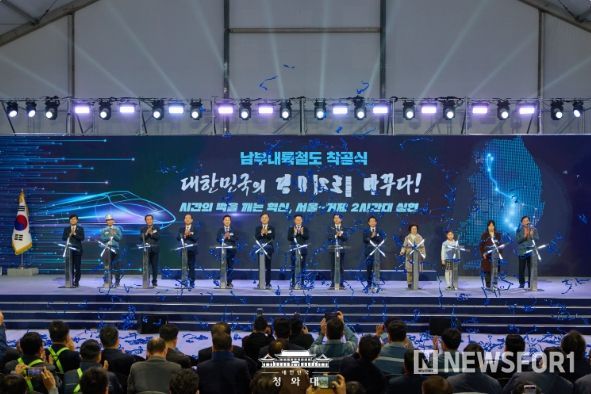 뉴스포원(NEWSFOR1) 윤경덕 기자 | 이재명 대통령은 6일 "남부내륙철도는 단순히 선로 하나를 놓는 사업이 아니다"라며 "수도권에 모든 것이 집중된 '일극 체제'에서 벗어나 사람과 지역을 잇고, 기회를 연결하며, 지역의 성장동력을 만들어내는 국토 대전환의 시작"이라고 말했다.