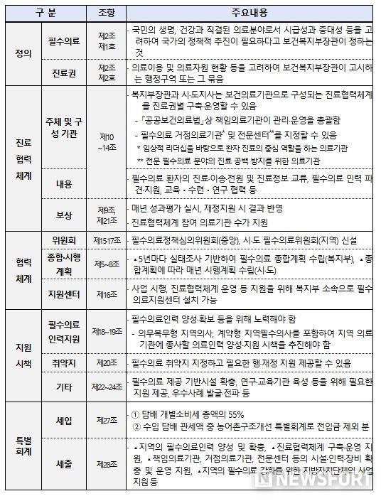 지역필수의료법의 주요 내용은 다음과 같다.