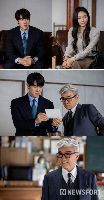 이 가운데 오늘(9일) 공개된 스틸컷에는 두 변호사가 신이랑 법률사무소에서 포착돼 이목을 집중시킨다. 대형 로펌 ‘태백’을 나온 한나현이 신이랑의 파트너로 새 출발한 예감을 들게 하는 장면이다. 여기에 두 사람이 함께 바라보고 있는 사람이 눈길을 끈다. 다름 아닌 이덕화가 중후한 수트 차림으로 범접할 수 없는 아우라를 뿜어내고 있기 때문. 신이랑과 함께 의문의 사진을 뚫어지게 응시하는 그가 과연 산 사람으로 사건을 의뢰하러 온 것인지, 아니면 신이랑의 눈에만 보이는 새로운 망자인지에 대한 궁금증이 폭발하고 있다.