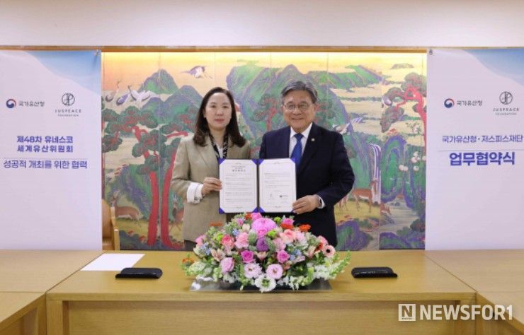 뉴스포원(NEWSFOR1) 윤서빈 기자 | 국가유산청은 저스피스재단과 4월 24일 오후 2시 국립고궁박물관(서울 종로구)에서 제48차 유네스코 세계유산위원회 회의(48th Session of the World Heritage Committee)의 성공적 개최를 위한 업무협약을 체결했다.
