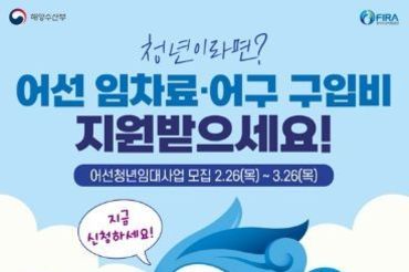 해양수산부, 청년이라면? 어선 임차료·어구 구입비 지원받으세요!