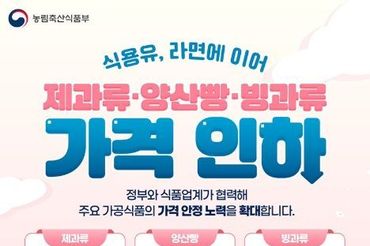 농림축산식품부, 식용유·라면에 이어 과자·빵·아이스크림까지 가격 인하!