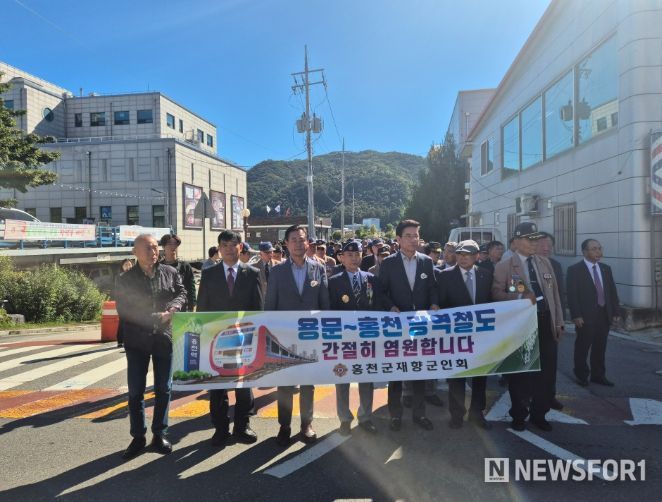 기념식 후에는 ‘홍천철도 예비타당성조사 통과 염원 가두행진’이 이어져, 참석자 120여 명이 홍천군종합사회복지관에서 꽃뫼공원, 홍천교육지원청, 신한은행, 신협 본점 구간을 따라 행진하며, 군민 염원을 함께했다.