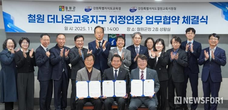 뉴스포원(NEWSFOR1) 윤경덕 기자 | 강원특별자치도교육청은 철원군청, 철원교육지원청과 11월 3일 철원군청 상황실에서 ‘철원 더나은교육지구 연장지정 업무협약’을 체결했다.