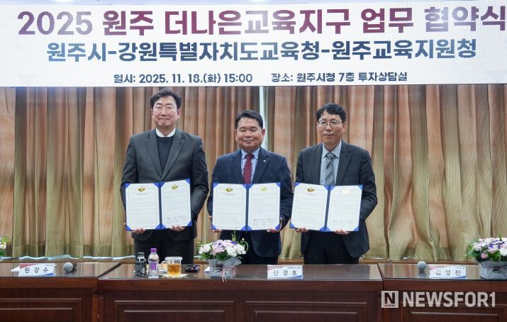 뉴스포원(NEWSFOR1) 윤경덕 기자 | 강원특별자치도교육청은 원주시, 원주교육지원청과 11월 18일 원주시청에서 ‘원주 더나은교육지구 연장지정 업무협약’을 체결했다.