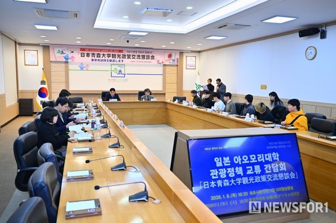 뉴스포원(NEWSFOR1) 윤경덕 기자 | 속초시가 2026년 1월 8일 일본 아오모리대학 관계자들과 관광정책 간담회를 열고, 속초시와 일본 아오모리시 간 관광 교류 협력방안을 논의했다. 이날 아오모리대학 교수와 학생 등 8명이 속초시를 방문했다.