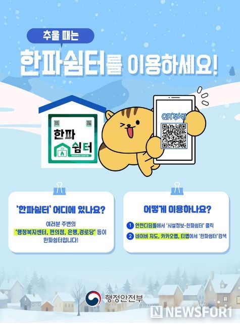 여러분 주변의 '행정복지센터, 편의점, 은행, 경로당' 등이 한파쉼터입니다!