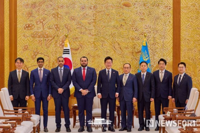 뉴스포원(NEWSFOR1) 윤경덕 기자 | 이재명 대통령은 28일 오전 「모하메드 빈 압둘아지즈 알-쿨라이피(Mohammed bin Abdulaziz Al-Khulaifi)」 카타르 국왕 특사를 접견했다.