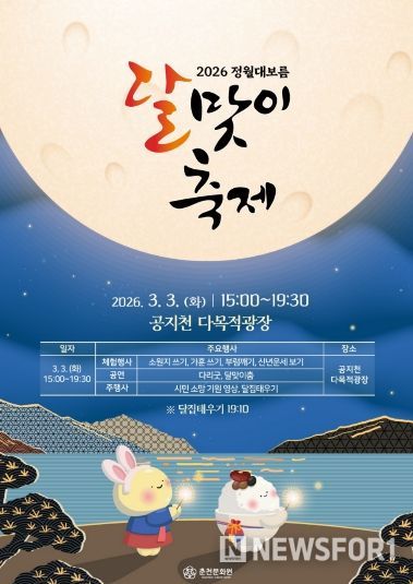 춘천문화원은 3일 오후 3시부터 7시 30분까지 공지천 다목적광장에서 ‘2026년 정월대보름 달맞이 축제’를 연다.