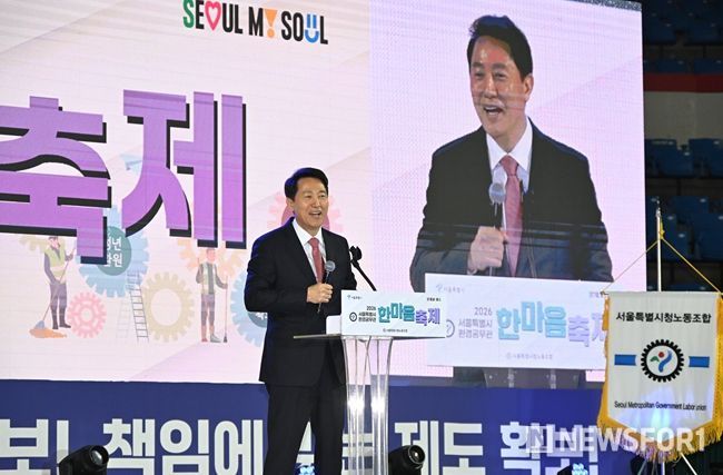 뉴스포원(NEWSFOR1) 편집국 기자 | 오세훈 서울시장은 19일 오전 10시30분 잠실 학생체육관(송파구 잠실동 10)에서 열린 ‘2026 환경공무관 한마음축제’에 참석해 서울을 세계적인 청결도시로 만들어 준 노고에 감사를 전하고, 환경공무관의 작업환경과 안전을 확실히 챙겨 나가겠다고 약속했다.