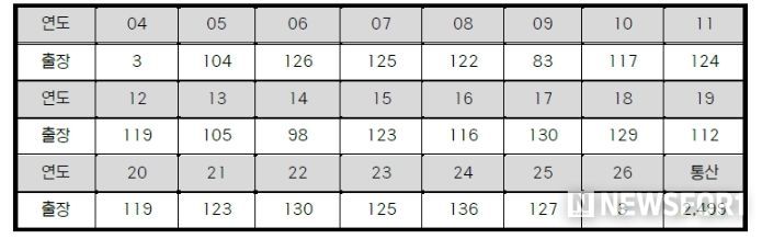 뉴스포원(NEWSFOR1) 편집국 기자 | 삼성 강민호가 KBO 리그 최초 2,500경기 출장까지 단 한 경기만 남겨두고 있다.