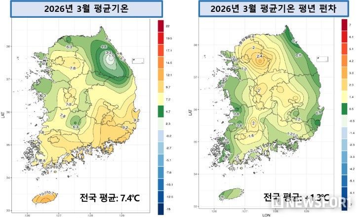 뉴스포원(NEWSFOR1) 윤경덕 기자 | 기상청은 2026년 3월의 기후 특성과 원인에 대한 분석 결과를 발표했다.