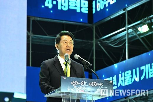 뉴스포원(NEWSFOR1) 편집국 기자 | 오세훈 서울시장은 18일 오후 7시 광화문광장 육조마당에서 열린 ‘4‧19혁명 66주년 서울시 기념행사’에 참석했다.