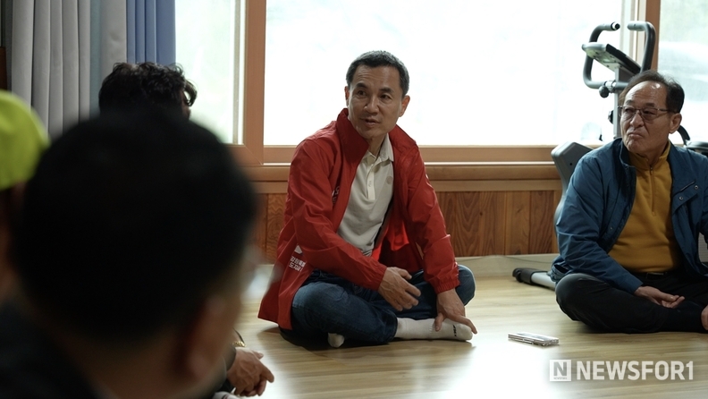 김진태 강원특별자치도지사 후보가 21일, 현장 밀착형 행보인 ‘회관일기’의 다섯 번째 여정을 양양군 손양면 수산리어촌마을회관에서 이어갔다.