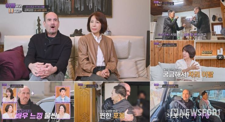 그렇게 서로를 반겼지만, 전수경 아버지와 에릭은 통역을 맡아 줄 전수경이 자리를 비우자 적막만이 감돌았다. 에릭이 용기 내 “저 올해 67세예요”라며 대화를 시도했지만, 알아듣지 못한 전수경 아버지는 어색한 미소와 함께 끄덕거리며 딸만 기다렸다. 전수경은 아버지와 남편이 자신이 부재중일 때 어떤 모습일지 궁금해 일부러 자리를 피해줬다. 에릭은 “아버지와 둘만 있던 적이 거의 없다”며 장인어른과 처음 보내는 둘만의 시간에 긴장한 듯한 모습을 보였다. 언어의 장벽에 부딪힌 전수경 아버지와 사위 에릭이 어떻게 함께 시간을 보낼지, 두 사람 사이의 거리감을 좁힐 수 있을지 관심이 쏠린다.