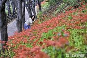 뉴스포원(NEWSFOR1) 윤경덕 기자 | 울산 남구 선암호수공원이 가을을 붉게 수놓은 꽃무릇으로 물들고 있다. 남구에 따르면, 호수 산책로 4km와 축구장 옆 테마쉼터에 조성된 49만여 본의 꽃무릇은 9월 20일부터 개화해 10월 초까지 이어지며, 특히 9월 마지막 주말 절정을 맞아 가장 화려한 풍경을 만날 수 있다. 개화 후 약 열흘간 이어지는 붉은 물결은 시민들의 일상에 특별한 가을의 감동을 전한다. 남구는 2019년부터 꽃무릇을 심기 시작해 꾸준히 확장해 왔고 올해 '선암호수공원 명품둘레길 조성 사업'을 통해 약 2만 5천여 본의 꽃무릇을 추가로 심어 총 51만 5천여 본 규모의 대규모 군락지로 거듭나도록 할 예정이다. 아울러 수선화, 왜성조팝나무 등 다양한 초화류와 수목을 심고 휴게공간도 조성해 시민들이 풍성한 볼거리와 쾌적한 휴식을 즐길 수 있도록 할 계획이다. 꽃무릇은 수선화과에 속하는 여러해살이 구근식물로 본래 이름은 돌 틈에서 나오는 마늘종 모양을 닮아 '석산화(石蒜花)'라 불리며 특히 잎이 나기 전 꽃이 먼저 피는 독특한 특성으로 인해 '이루지 못할 사랑'이라는 꽃말