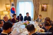 뉴스포원(NEWSFOR1) 윤경덕 기자 | 이재명 대통령이 "대한민국 영토 내가 아니라 전 세계에 발 딛고 사는 우리 재외국민들이 대한민국 국민임을 자랑스럽게, 당당하게 말할 수 있는 대한민국을 꼭 만들겠다"고 약속했다. 제80차 유엔총회 참석을 위해 미국을 방문한 이재명 대통령은 22일(현지시간) 뉴욕에서 현지 동포 약 300명을 초청해 만찬을 겸한 간담회에서 이 같이 말했다. 이 대통령은 "우리 대한국민들은 위대한 존재들"이라며 "식민지에서 해방된 나라 중 경제적으로 성공한 산업화를 이뤄내고, 민주주의까지 이뤄낸 나라는 대한민국이 유일하다"고 언급했다. 특히 "원래 조국이 해외에 나가 있는 우리 국민들을 걱정해야 되는데, 우리 재외 국민들이 대한민국을 걱정하는 일이 꽤 오랫동안 있었던 것 같다"면서 "이제 대한민국이 여러분을 생각하고 여러분을 걱정하겠다"고 강조했다. 이날 동포들의 따듯한 환대로 시작된 간담회에서, 이 대통령은 대한민국이 다양한 분야에서 두각을 나타내는 모범 국가로 발전할 수 있었던 원동력은 바로 국민임을 언급했다. 또한 "많이 듣는 얘기 중 '투표하기