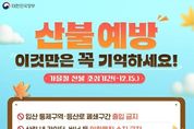 뉴스포원(NEWSFOR1) 편집국 기자 | ■ 산불예방 이것만은 꼭 기억하세요! - 가을철 산불 조심기간(~12.15.) · 입산 통제구역·등산로 폐쇄구간 출입 금지 · 산림 내 라이터, 버너 등 인화물질 소지 금지 · 산림 주변 흡연 및 담배꽁초 투기 금지 · 산림과 인접지에서 논·밭두렁 및 쓰레기 소각 금지 · 허용된 지역 외 취사 및 야영 금지 ☞ 산불 발견 즉시 신고 ☎119