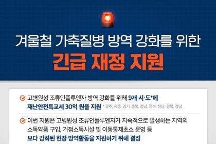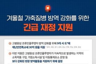 겨울철 가축질병 방역 강화를 위한 긴급 재정 지원
