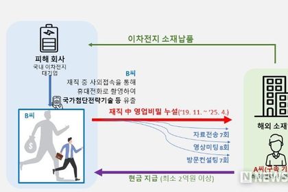 뉴스포원(NEWSFOR1) 윤경덕 기자 | 지식재산처 기술디자인특별사법경찰과 대전지방검찰청 특허범죄조사부는 국가첨단전략기술이 포함된 피해기업의 자료를 빼돌린 해외협력사 영업총감(영업총괄) 외국인 A씨(34세, 구속)를『국가첨단전략산업 경쟁력 강화 및 보호에 관한 특별조치법』,『부정경쟁방지 및 영업비밀 보호에 관한 법률』등의 위반혐의로 기소했다고 12일 밝혔다.