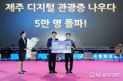 뉴스포원(NEWSFOR1) 윤경덕 기자 | 제주특별자치도는 24일 제주 디지털 관광증 ‘나우다’ 가입자가 5만 명을 돌파했다고 밝혔다. 8월 11일 발급을 시작한 지 두 달여 만이다. 나우다는 제주 관광의 가치를 디지털로 확산하고 관광객에게 다양한 혜택을 제공하기 위해 올해 신규 추진한 사업이다. 나우다 가입자는 지난 11일 4만 명을 돌파한 이후 약 2주 만에 5만 명을 넘어서며 빠른 증가세를 보이고 있다. 네이버와 협업해 가입자에게 네이버 500포인트를 부여하는 온라인 프로모션과 5,000여 명의 회원이 제주를 방문한 한국 청년회의소(JC) 전국대회 등 오프라인 홍보 이벤트 추진의 결과다. 제주도는 한국 JC 전국대회 개막식 부대행사로 나우다 가입 및 제주 특산품 증정 이벤트를 진행했다. 오영훈 지사는 나우다 가입 5만 명 돌파에 힘을 보탠 문관백 한국 JC 회장에게 감사를 표했다. 나우다 가입자 혜택도 확대된다. 11월 1일부터 12월 31일까지 나우다 가입자 전체에게 도내 공영관광지 27개소 입장료를 도민 수준으로 할인해주는 혜택이 적용된다. 5만 명 달성 기념 한시적 조치다.