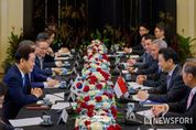 뉴스포원(NEWSFOR1) 윤경덕 기자 | 싱가포르를 국빈 방문 중인 이재명 대통령은 3월 2일 오전 '로렌스 웡(Lawrence Wong)' 싱가포르 총리와 정상회담을 갖고 양국 간 전략적 동반자 관계 심화 방안과 한반도 및 중동정세 등 주요 국제 현안에 대해 폭넓게 논의했다. 웡 총리는 작년 11월 서울에서의 정상회담 이후 4개월 여만에 싱가포르에서 이 대통령을 맞이하게 되어 기쁘다며 “이번 방문은 전략적 동반자인 한-싱가포르 간 호혜적 실질 협력 사업을 가속화하기 위한 중요한 동력이 될 것”이라며 이 대통령의 방문을 환영했다. 이 대통령은 “친한 친구를 만난 것처럼 반갑다”고 화답했다. 이어 웡 총리가 작년 정상회담 때 수교 50주년 만에 양국 간 전략적 동반자 관계를 체결한 것에 대해 ‘좋은 것은 언제나 기다릴 가치가 있다’고 언급한 것을 상기하고, ‘오랜 신뢰의 동반자’인 양국 관계의 새로운 이정표를 계속 세워 나가자고 말했다. 이 대통령은 대외적으로 안보‧경제 환경이 어려운 가운데 양국이 전략적 안보협력, 경제적 연대, 미래·첨단기술 분야 협력이라는 3대 축을 중심으로 협력을 추진해 나가자고 했다.